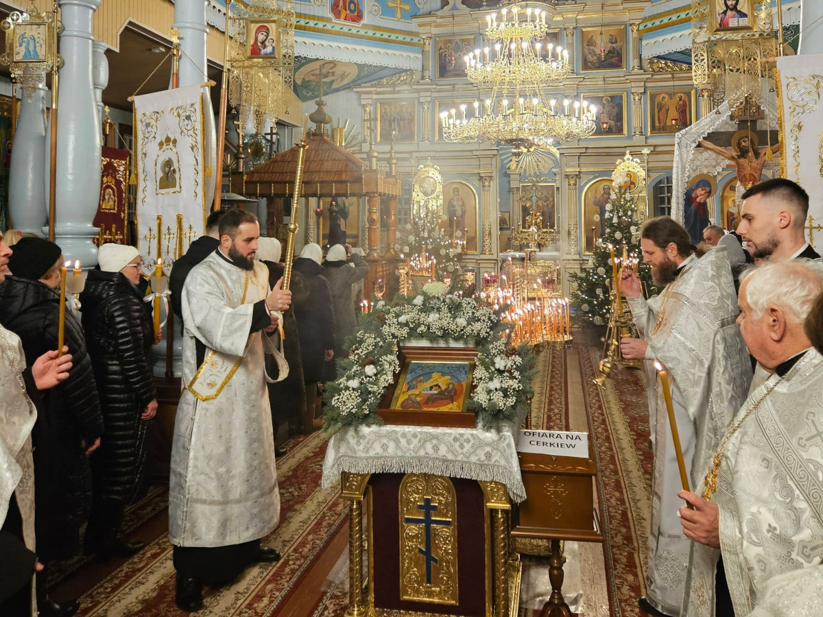 W wigilijną noc święta Narodzenia w ciele Pana i Zbawiciela naszego Jezusa Chrystusa odbyło się w naszej cerkwi nabożeństwo Wielkiego Powieczerza i świąteczna Jutrznia, po której sprawowana była uroczysta Boska Liturgia.