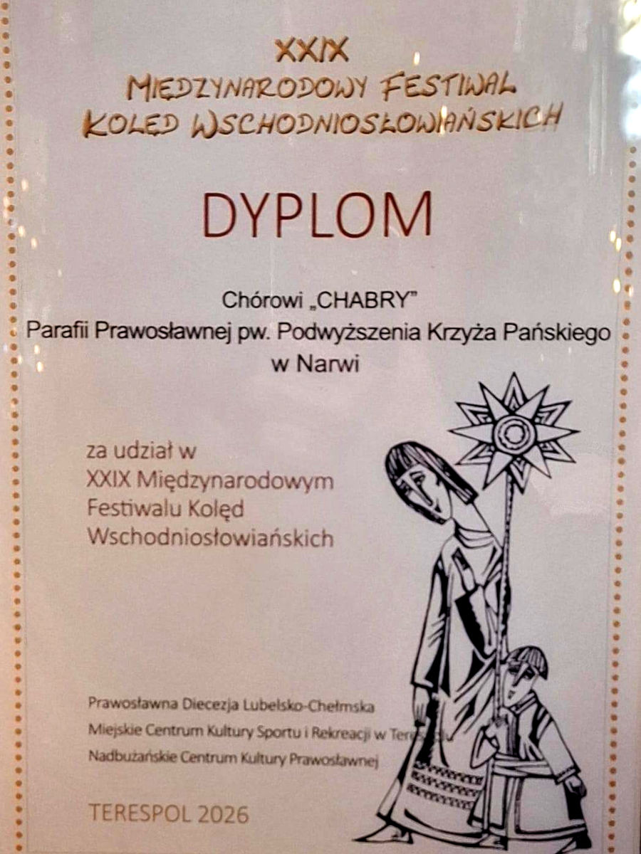 Chór Chabry Parafii Prawosławnej w Narwi po raz kolejny miał przyjemność wziąć udział w Międzynarodowym Festiwalu Kolęd Wschodniosłowiańskich w Terespolu. XXIX edycja Festiwalu odbyła się 31 stycznia i 1 lutego 2026 roku w sali Miejskiego Centrum Kultury, Sportu i Rekreacji w Terespolu. Organizatorami Festiwalu są Prawosławna Diecezja Lubelsko-Chełmska, Miejskie Centrum Kultury Sportu i Rekreacji w Terespolu oraz Nadbużańskie Centrum Kultury Prawosławnej.